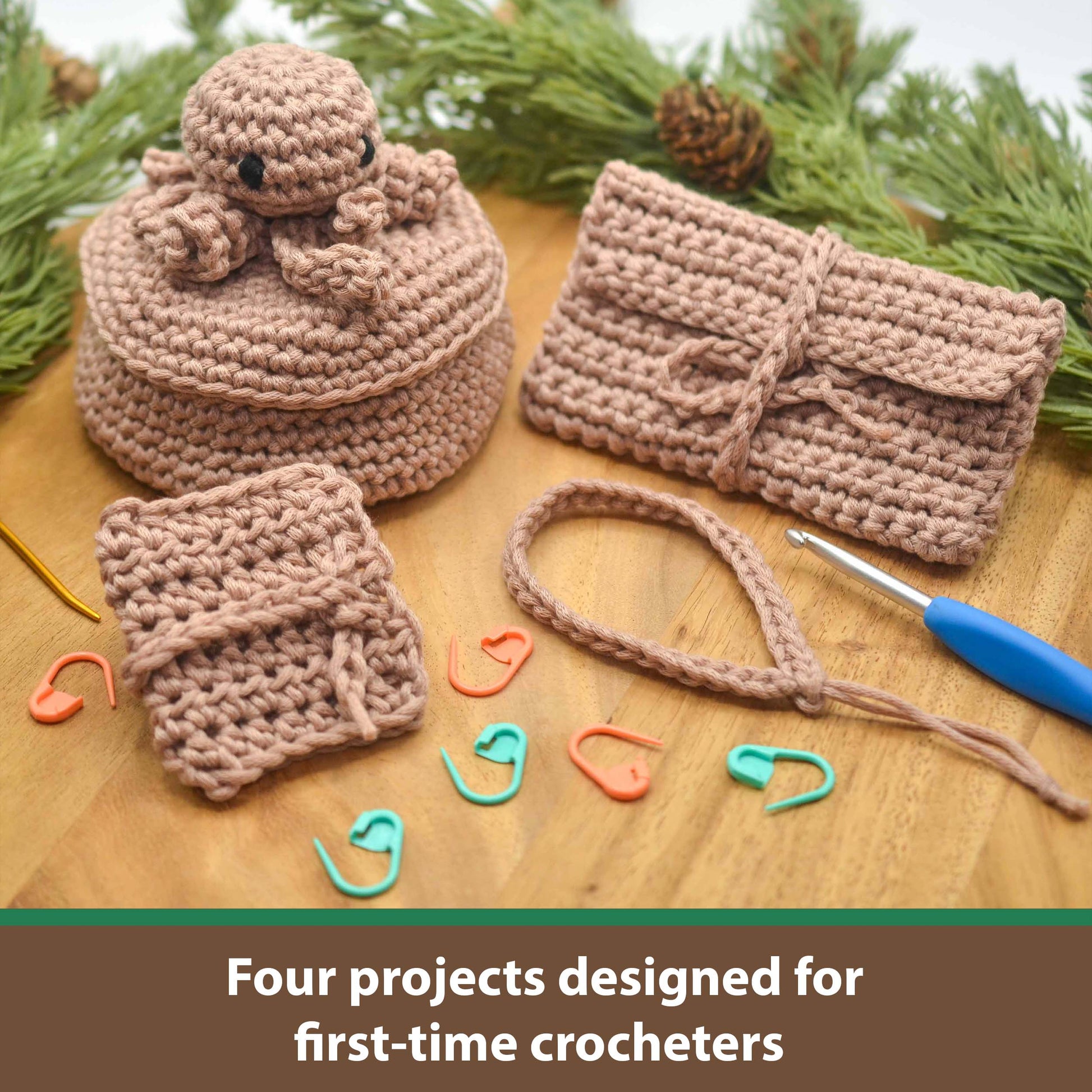 Never held a crochet hook but want to make something with yarn? This crochet beginner kit is for you. It includes video tutorials, a detailed guide, essential tools and materials, and exclusive projects to get you started.
