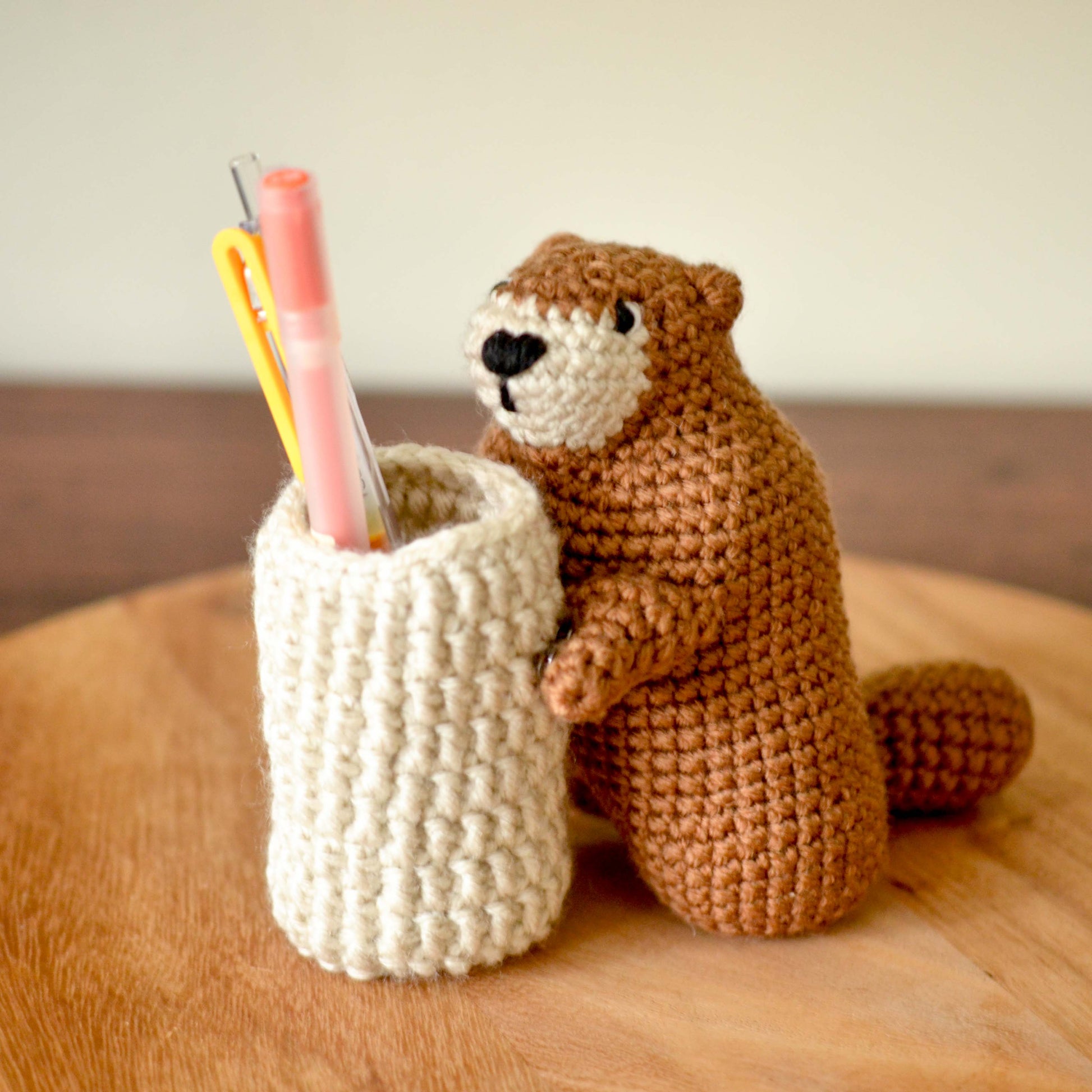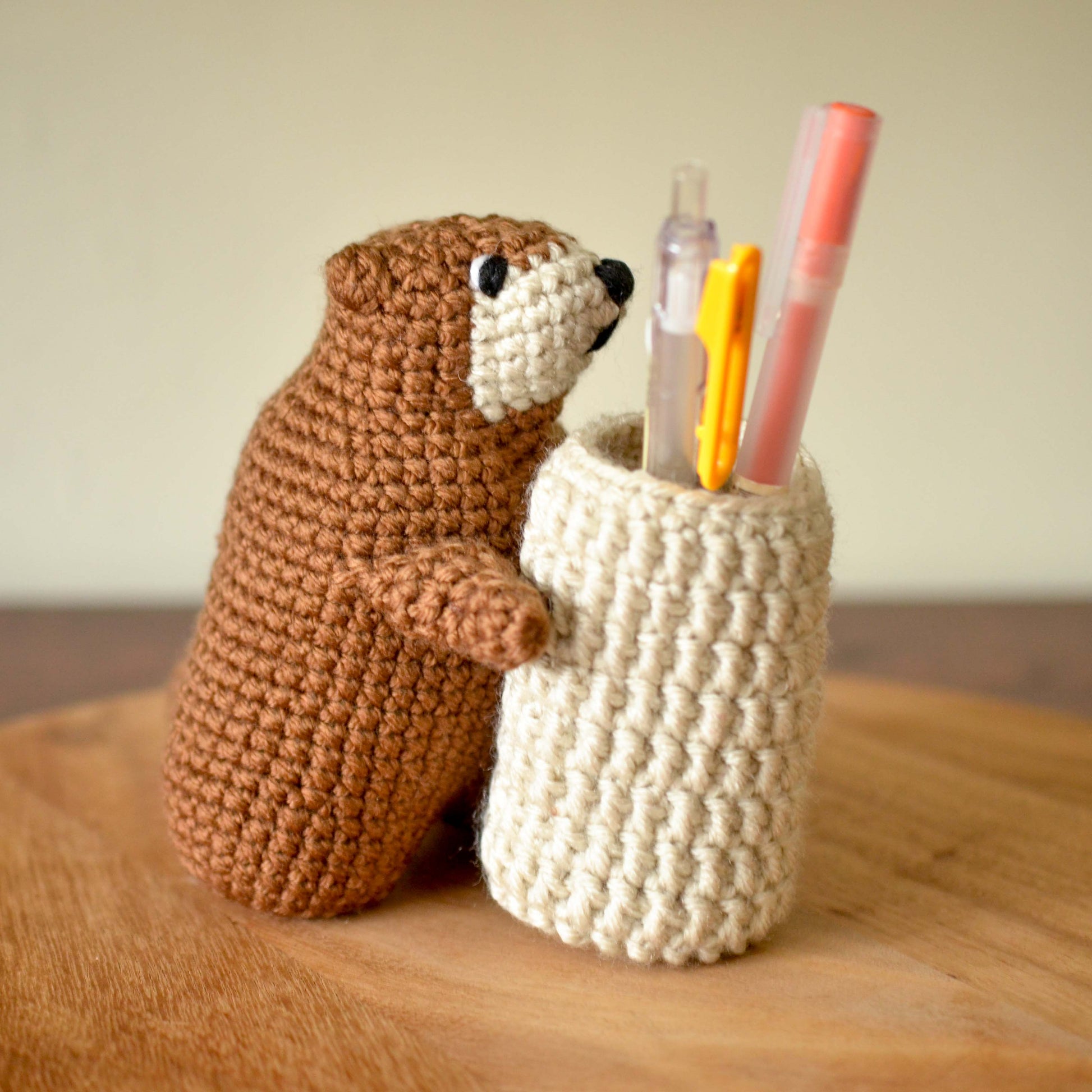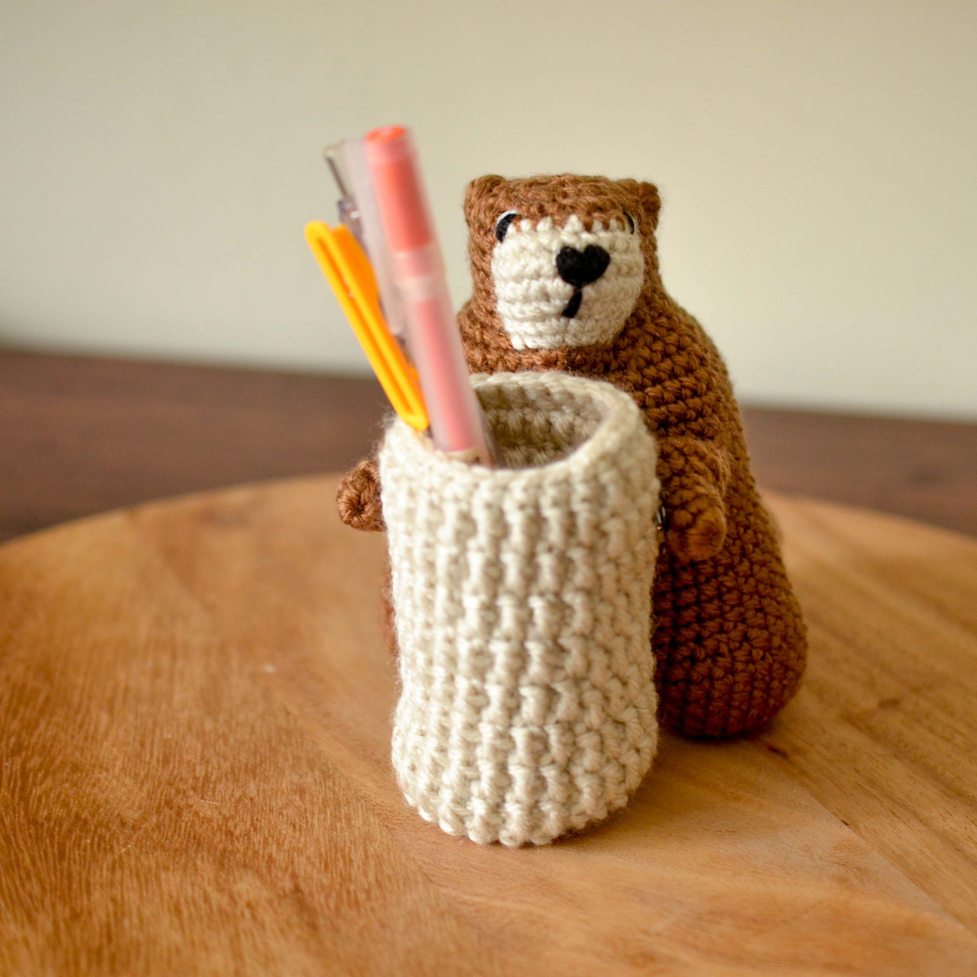 With its cute look, this crocheted groundhog pen holder makes a great work or study companion and is a great gift for yourself, your family or friends.