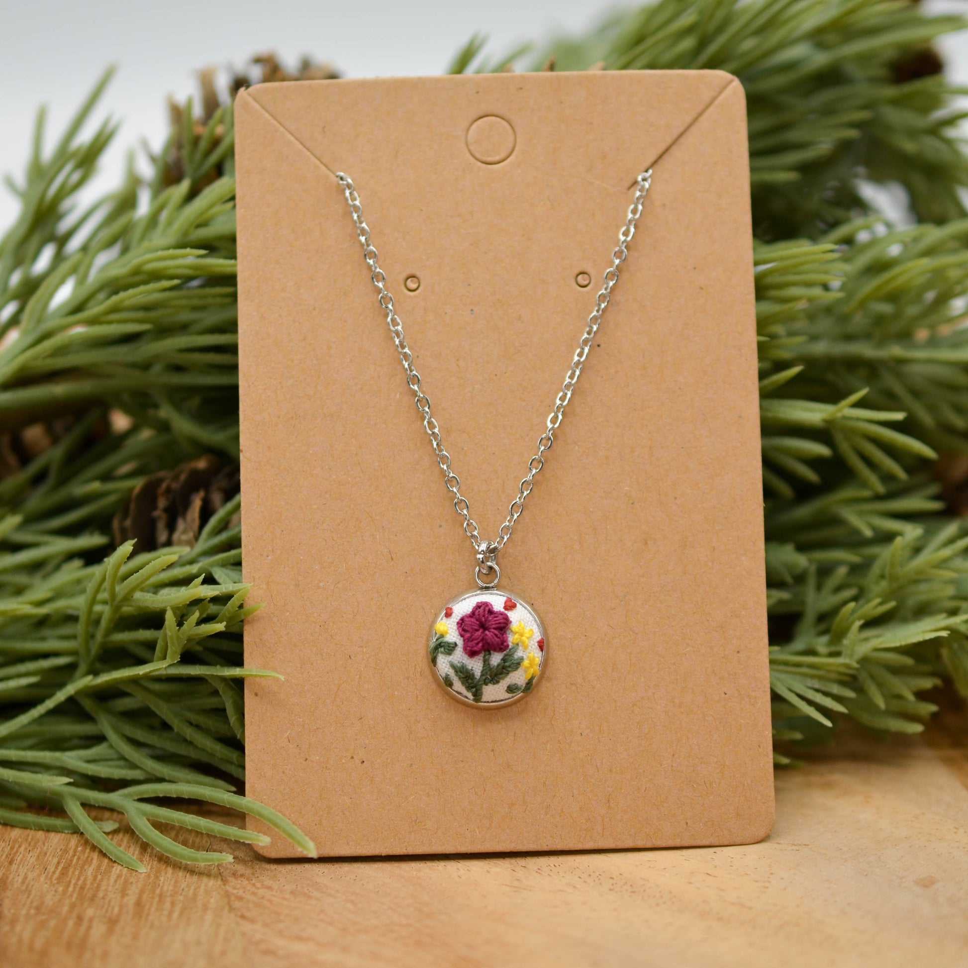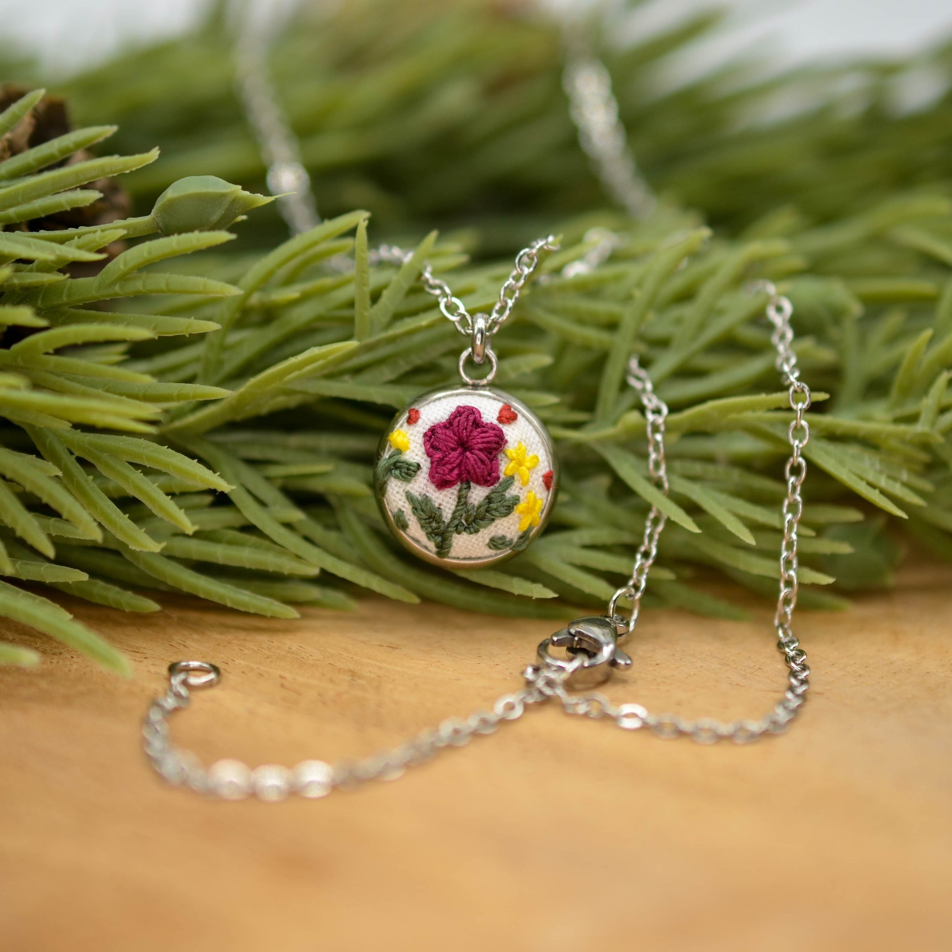 Each embroidery necklace is individually handmade, so you will receive a unique piece. The design is slowly crafted through many small stitches, and I hope the necklace can be a little reminder to slow down and take a deep breath, even on busy days.