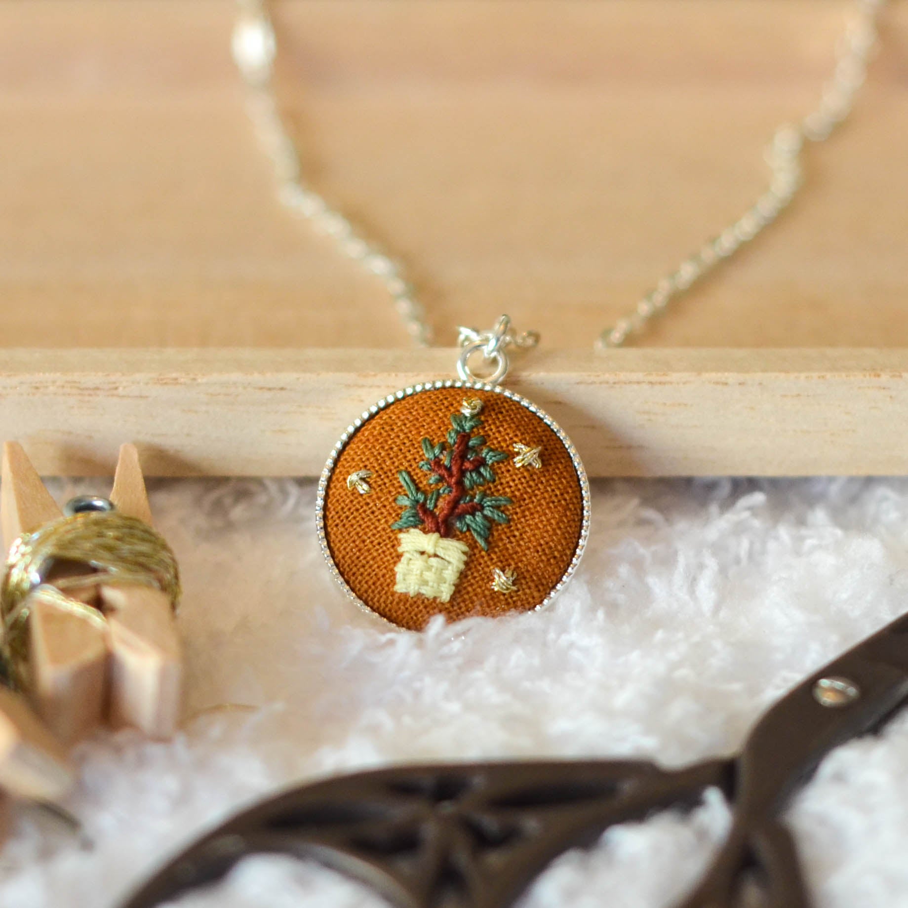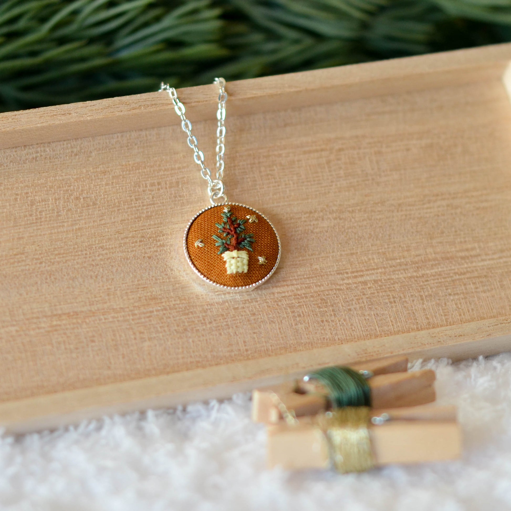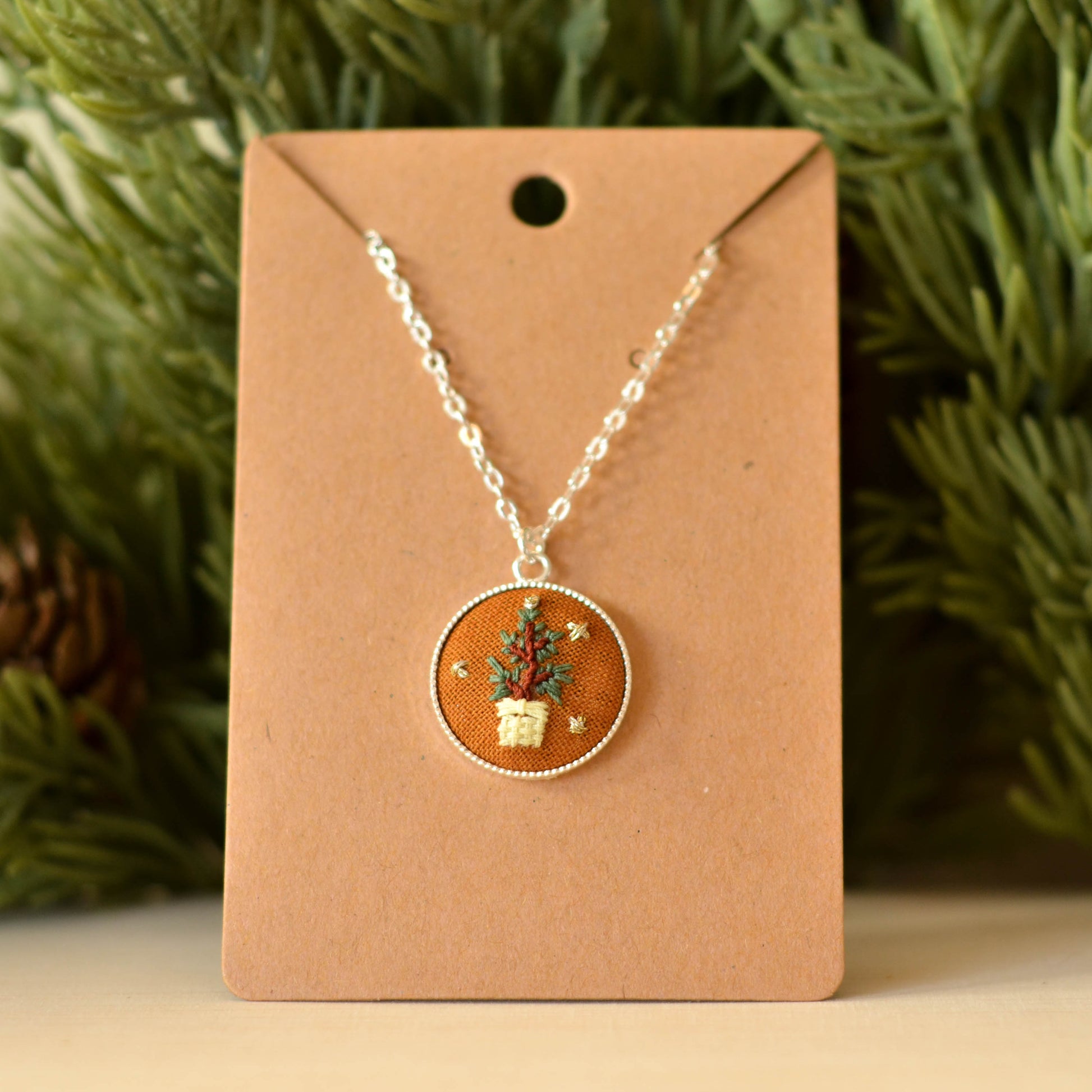 Potted Tree Necklace (Hand-Embroidered)