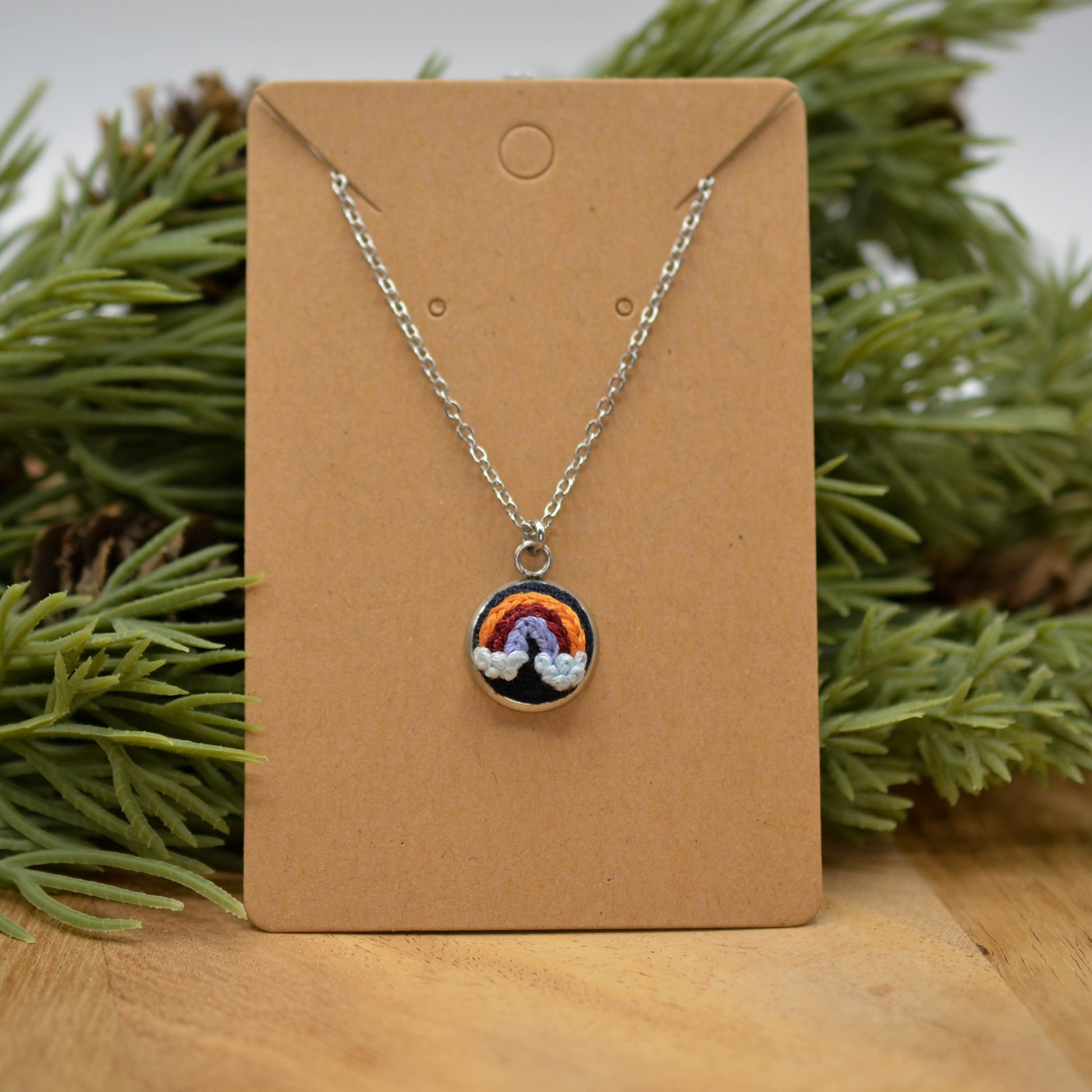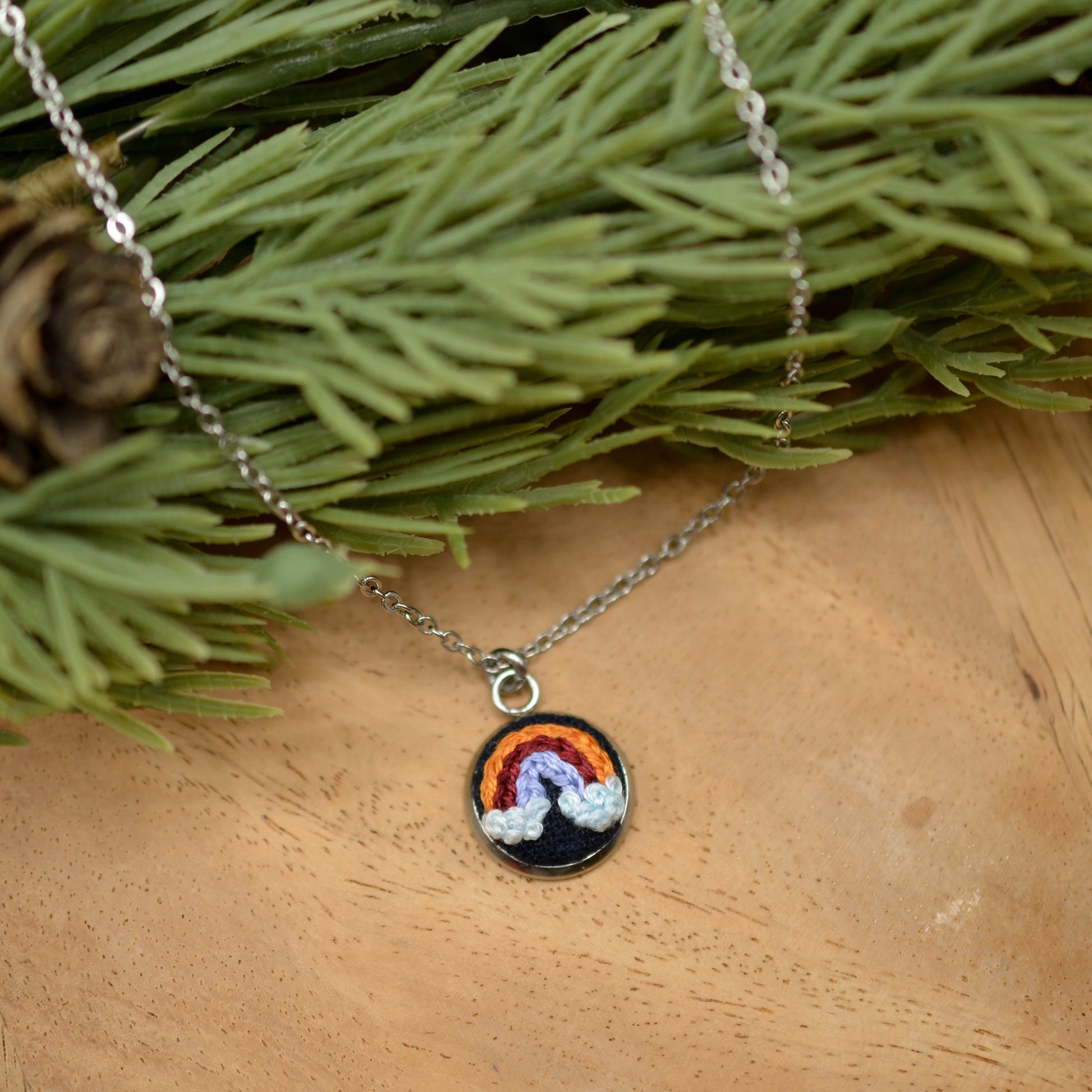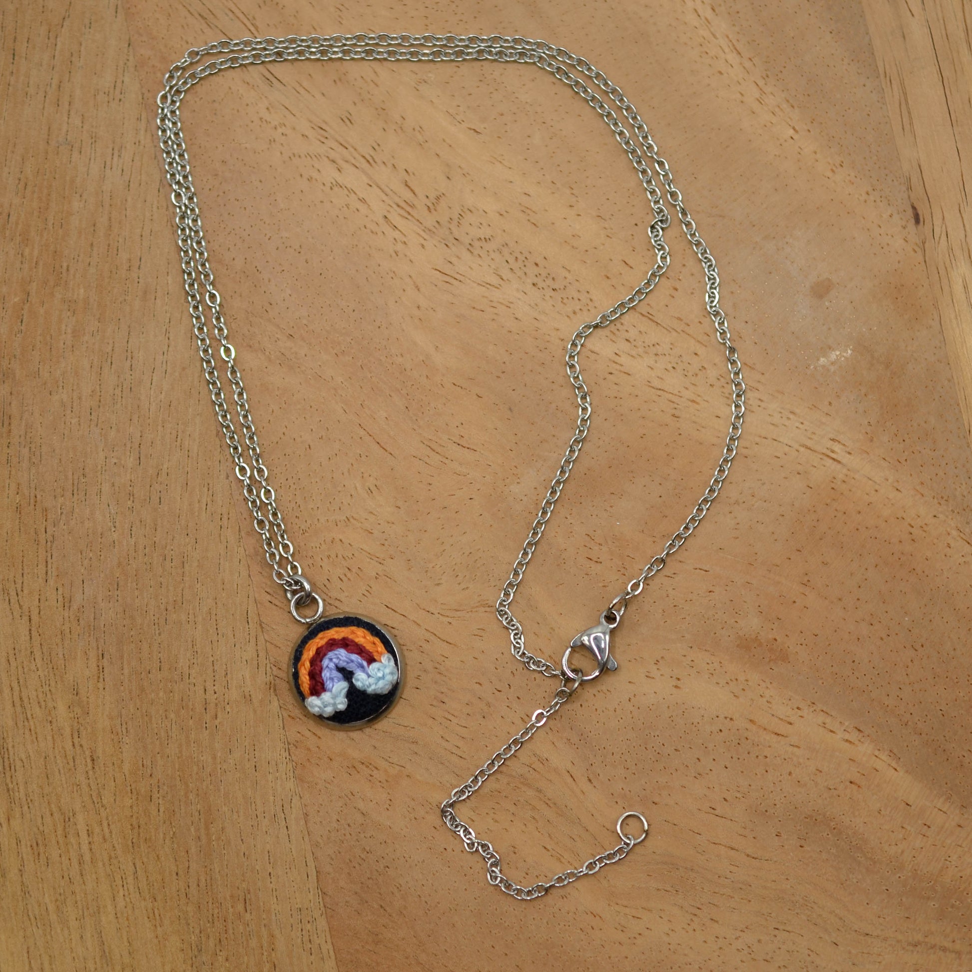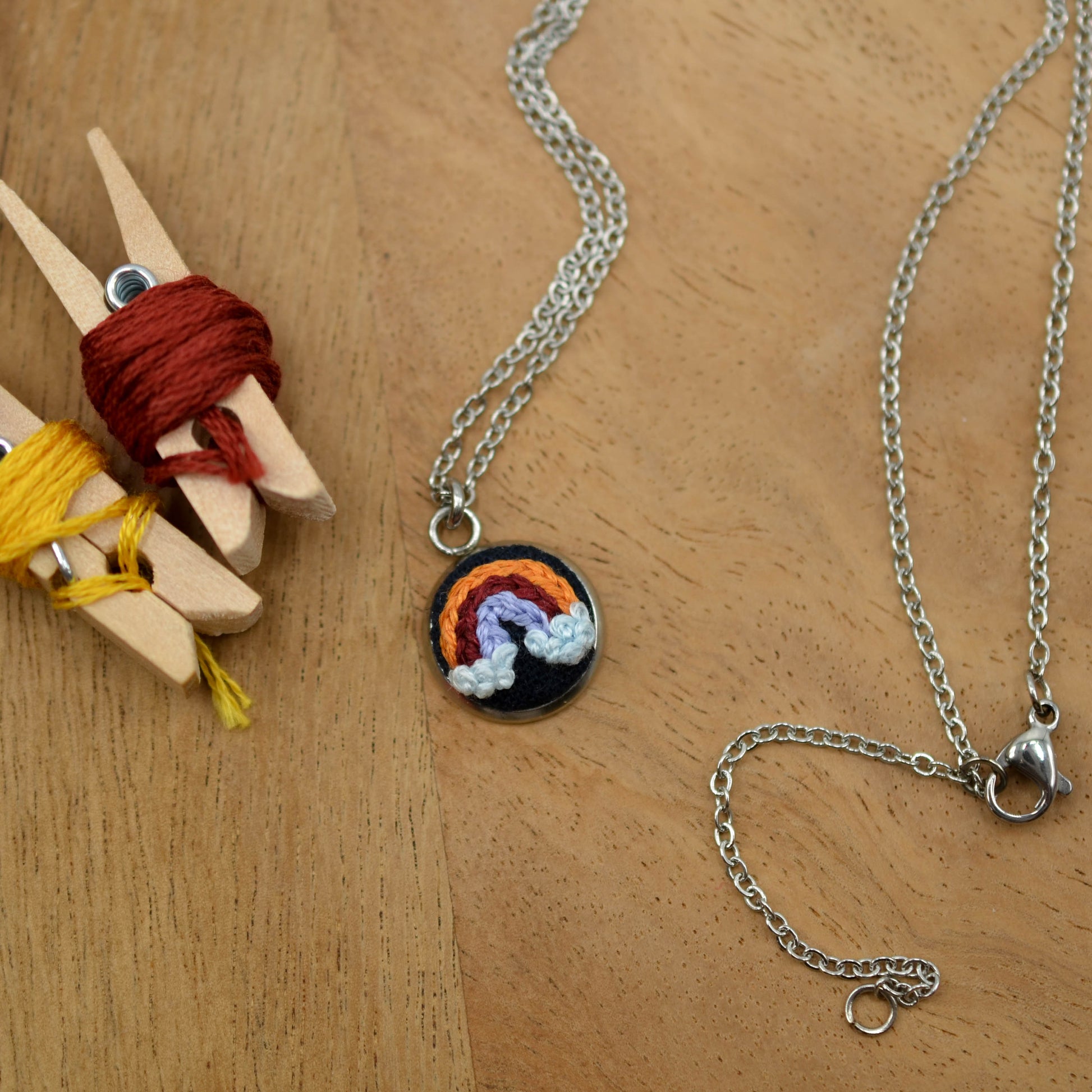 Each embroidery necklace is individually handmade, so you will receive a unique piece. The design is slowly crafted through many small stitches, and I hope the necklace can be a little reminder to slow down and take a deep breath, even on busy days.